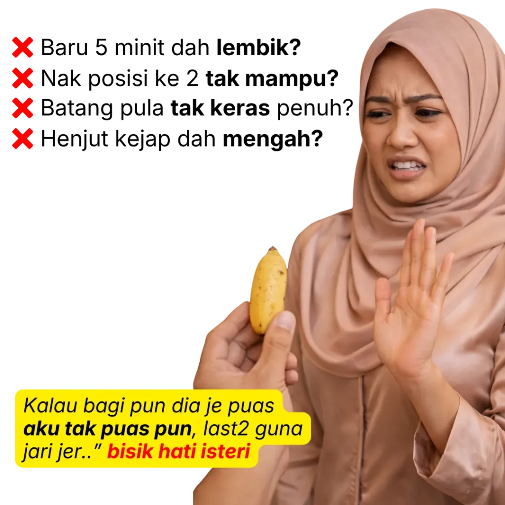 Bini pun naik serik susah nak ajak bersama sebab sepanjang perkahwinan tiap malam anda memang tak mampu puaskan dia walaupun dah berkali-kali cuba cari penyelesaian.. Tapi semua tak berkesan